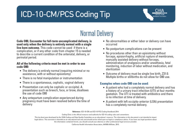 Normal Delivery ICD10 Coding Tip PDF Childbirth Obstetrics